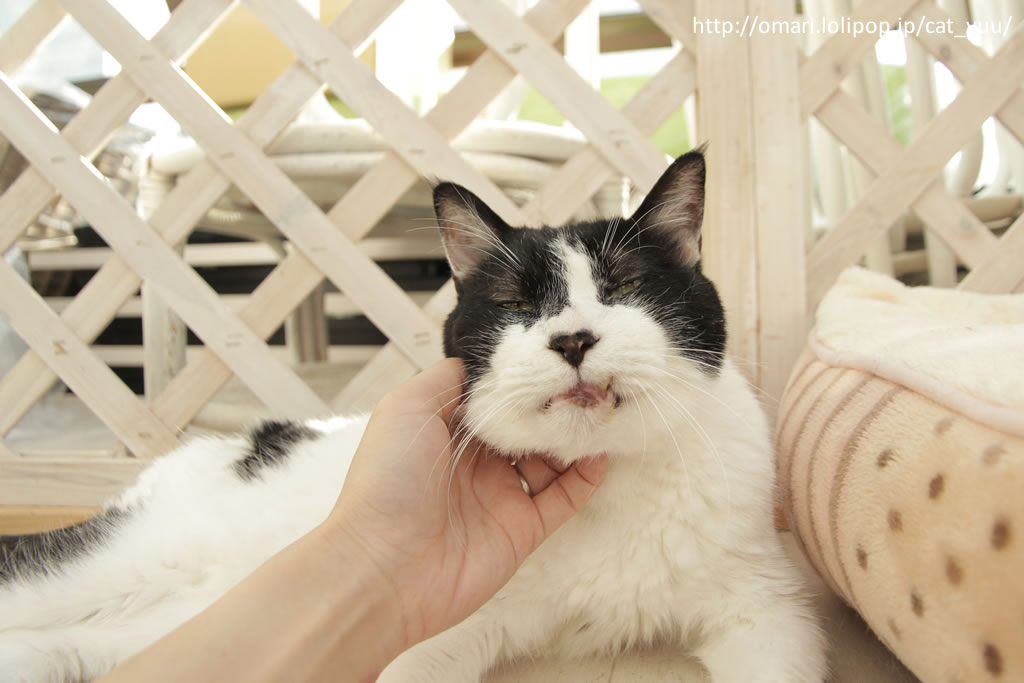 ハチワレ猫をナデナデ